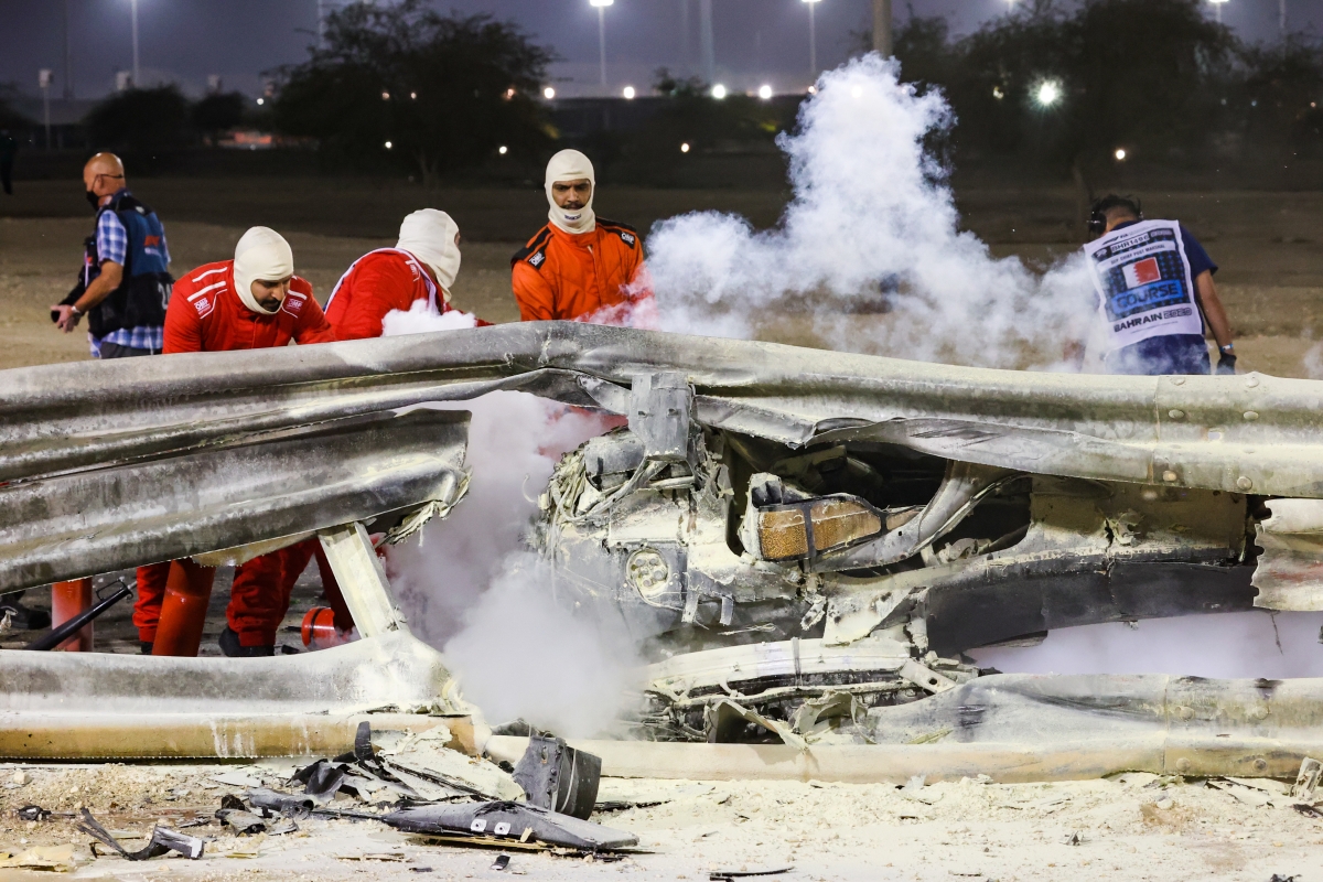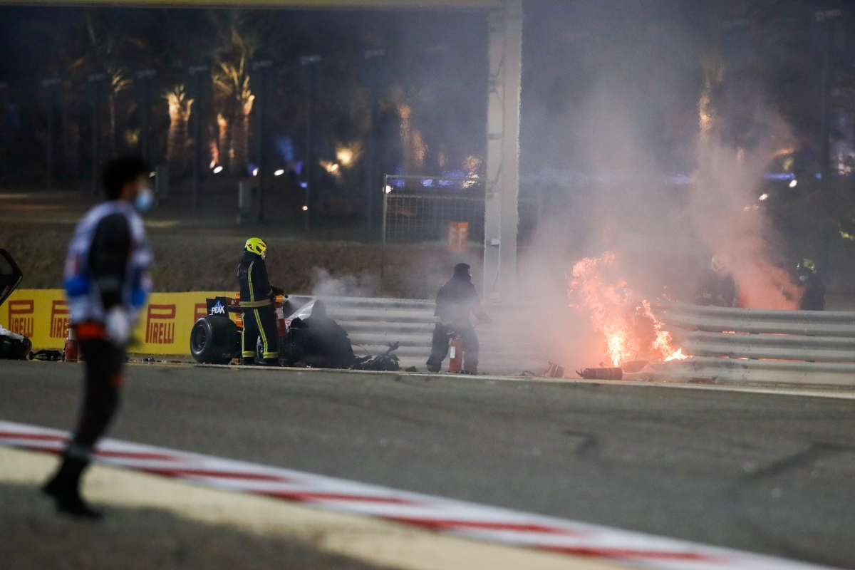 Grosjean consiguió salir entre las llamas después de 27 segundos gracias a un espacio vital entre el guardarraíl y el coche. "Esto fue espantoso. Romain está fuera del monoplaza y está bien", confirmó Haas. Así, el francés, visiblemente "aturdido", fue trasladado en helicóptero al hospital para someterse a algunas pruebas, aunque aparentemente solo sufre "quemadoras en manos y tobillos".
