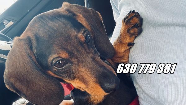 Se trata de un Teckel de 3 meses y medio y de color negro.